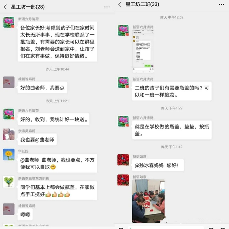 为了充实星工坊大龄同学们的居家生活,锻炼孩子们的动手能力,老师们商量后决定为孩子们送份“小礼物”--孩子们最爱的瓶盖手工活,宝贝们居家也能复工复产啦!