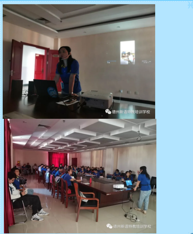 2020年9月19日下午,德州新语特教培训学校全体教师在新校区三楼大会议室进行孤独症专业理论知识培训。