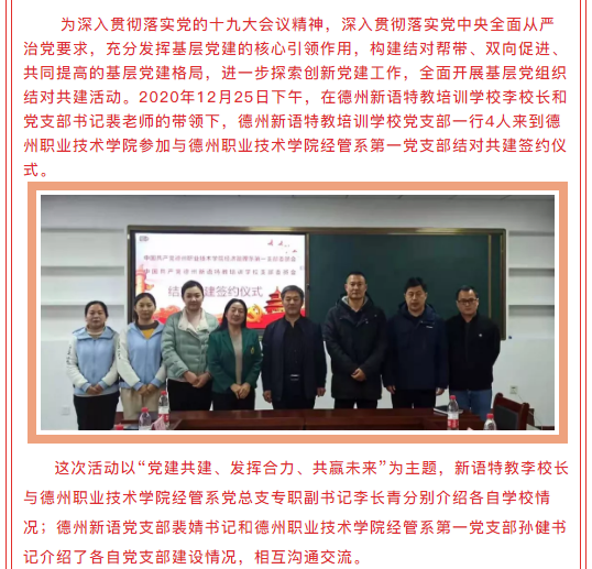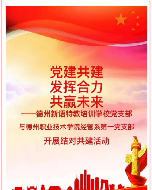 【党建共建】德州新语特教培训学校党支部与德州职业技术学院经管系第一党支部举办结对共建签约仪式